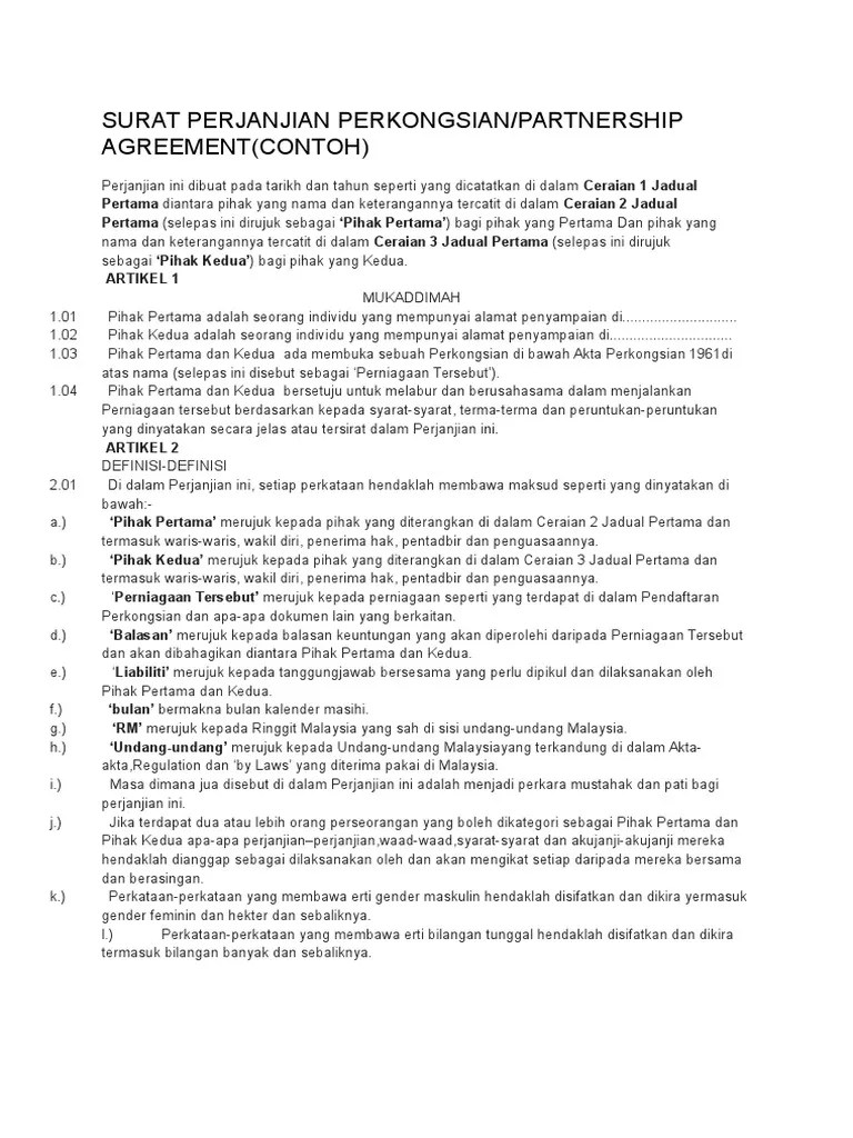 Contoh Perjanjian Perkongsian / Contoh Surat Perjanjian Perkongsian Perniagaan Word Contoh Surat Perjanjian Perkongsian Perniagaan Aku Dan Cute766 / Sultan memberi contoh tindakan siam itu tidak ubah seperti as if i were seize your watch and sell it to some other person.