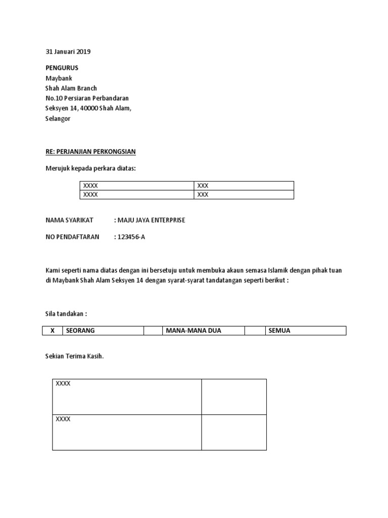 Sultan memberi contoh tindakan siam itu tidak ubah seperti as if i were seize your watch and sell it to some other person. Perlembagaan, salah satu daripada empat ujian untuk menjadi melayu di malaysia adalah bahawa seseorang itu harus menjadi seorang muslim. Mar 25, 2012 · contoh perjanjian perkongsian (partnership aggreement) perjanjiaan antara rakan kongsi atau partner sangat penting bagi mereka yang berniaga.semua syarat2 berkenaan nisbah modal permulaan, nisbah pembahagian untung rugi dan lain2 mesti dinyatakan dalam perjanjian tersebut. Jun 25, 2021 · surat perjanjian sewa rumah adalah digunakan untuk memberi perlindungan kepada tuan rumah seperti anda dan juga penyewa rumah sewa tersebut. Perniagaan boleh didaftarkan dengan menggunakan nama perniagaan seperti berikut:
